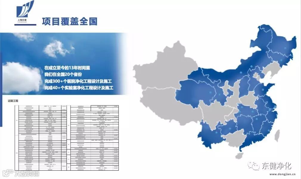 上海东健净化有限公司成立于2004年,主要从事医院净化工程的设计规划、工程施工、设备采购及售后维保服务,为客户提供专业、全方位的净化工程解决方案。我们坚持以创新、专业、关爱、以人为本作为企业经营的基石,形成了一支过硬的工程设计-工程施工-技术研发-产品生产-售后服务的技术团队。