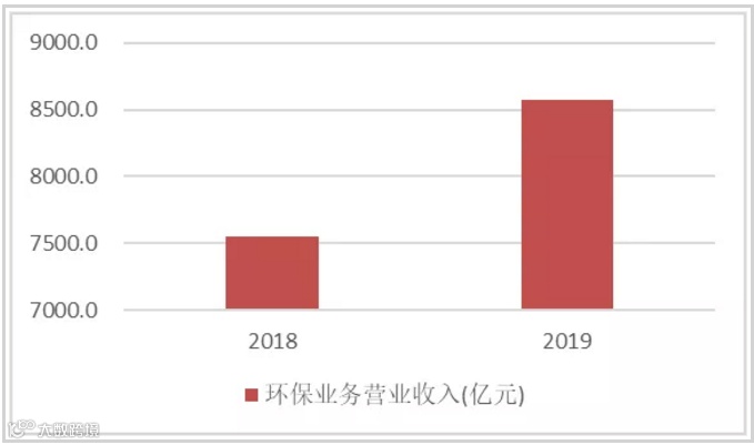 2019年,统计范围内企业环保业务营业收入9864.4亿元,同比增长了13.5%。