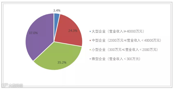 其中,营业收入在1亿元以上的企业,以9.8%的企业数量占比(较上年降低了0.6个百分点),贡献了超过92%的营业收入和利润。
