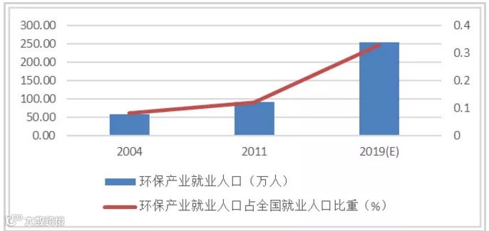 2004-2011年,我国环保产业从业人员年均增长率6.8%,2011-2019年年均增长率为13.6%。