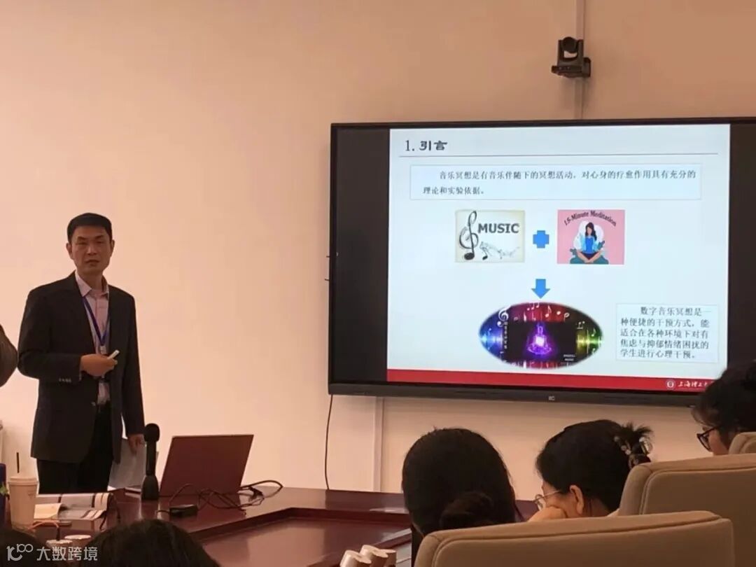 会议上,陈峰老师向在场的专家学者们分享了与秦毅老师、梁秀清老师、杨颎老师、陈福国老师等人共同撰写的研究结果。其中,2套不同类型的数字音乐冥想音频工具对A、B两组大学生的焦虑、抑郁情绪都产生了显著的改善效果。
