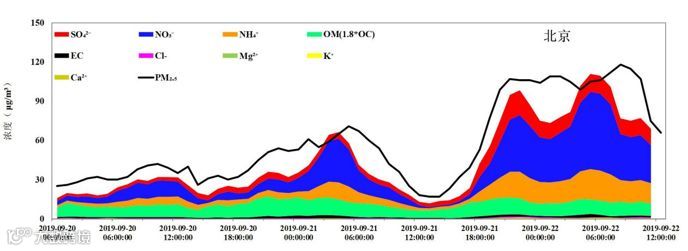 不利的气象条件是发生污染过程的重要外因。在京津冀及周边地区秋冬季节转换时期,冷暖气流交替,容易出现不利气象条件。对区域内多次重污染过程的分析表明,当近地面风速小于2 m/s、存在近地面逆温等不利气象条件时,污染物快速累积;特别是相对湿度高于60%时,气态污染物向颗粒物的二次转化显著加快。同时,受大气环流影响,区域内污染物输送对各地空气质量影响较大。例如,9月22日上午,北京市出现了轻度污染过程,期间PM2.5、SO2和CO浓度及硝酸盐含量快速上升,燕山山前传输通道的贡献明显。