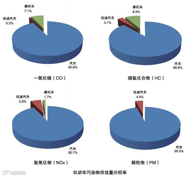 汽车是机动车大气污染排放的主要贡献者,其排放的CO、NOx和PM超过90%,HC超过80%。
