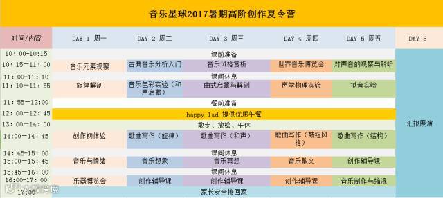 课程费用包括:为期一周(7月24号—28号)课程集训;5日营养午餐;每日果汁、点心;每日课堂记录;30号大舞台汇报演出;个人作品成品发行光碟。