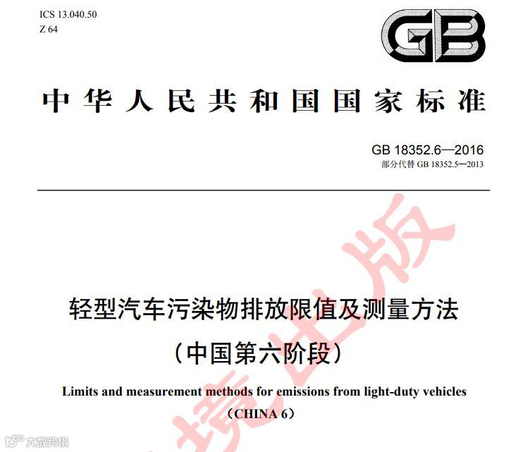 《轻型汽车污染物排放限值及测量方法(中国第六阶段)》