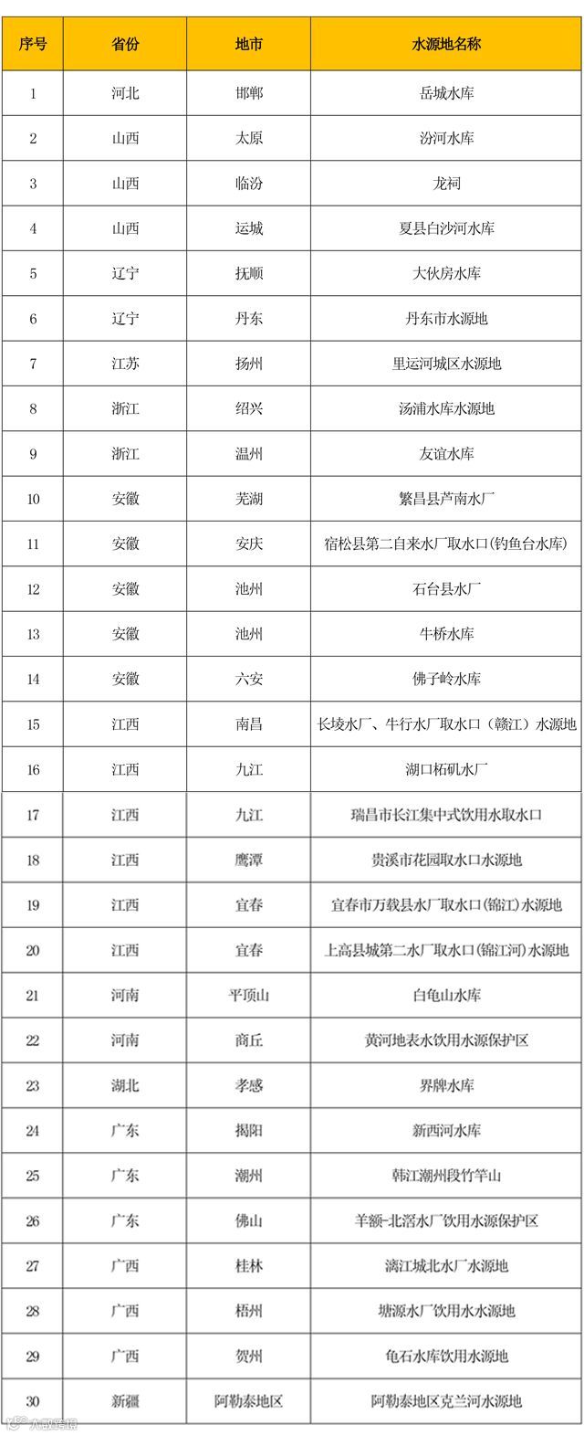 30个尚未完成整治水源地问题清单(具体问题共39个)
