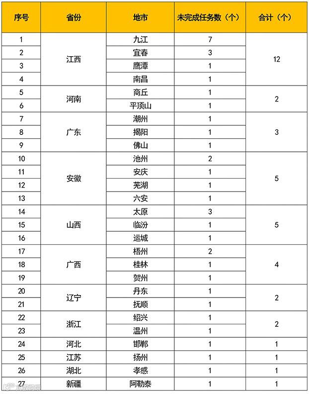 距离今年年底仅剩11天,仍有39个问题尚未完成整治,涉及江西九江、河南商丘、山西太原等27个地市。目前,剩余问题包括农村面源污染问题13个、道路交通问题3个、工业企业13个、非法排污口5个以及其他问题5个。