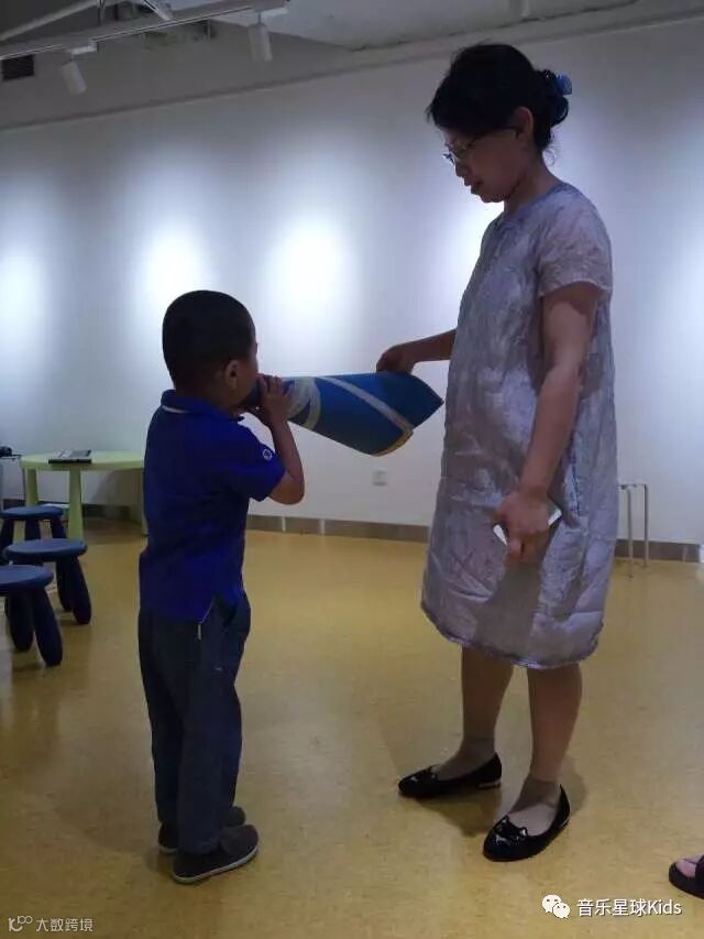 小朋友们有的说大灰狼来了,表情恐惧害怕;有的说在森林里的脚步声,随即tita走起来;有的说在海滩边,身体尽情地舞动