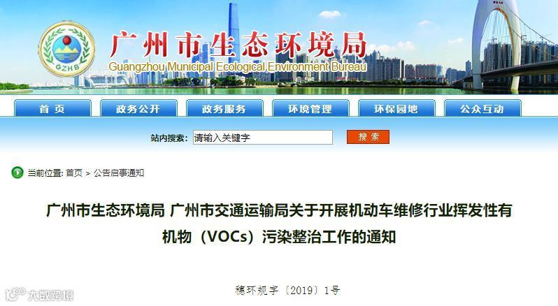 为打赢蓝天保卫战,规范我市机动车维修行业挥发性有机物(VOCs)污染治理,根据《中华人民共和国大气污染防治法》、生态环境部、交通运输部等国家六部委《“十三五”挥发性有机物污染防治工作方案》(环大气〔2017〕121号)、《广东省挥发性有机物(VOCs)整治与减排工作方案(2018-2020年)》(粤环发〔2018〕6号)等有关规定,结合本市实际,决定在全市开展机动车维修行业挥发性有机物污染整治工作。现就有关事项通知如下: