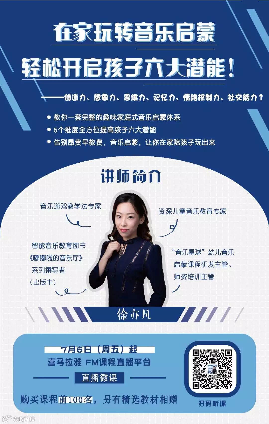 《在家玩转音乐启蒙,轻松开启孩子六大潜能》线上直播课程,在喜玛拉雅FM平台开售啦