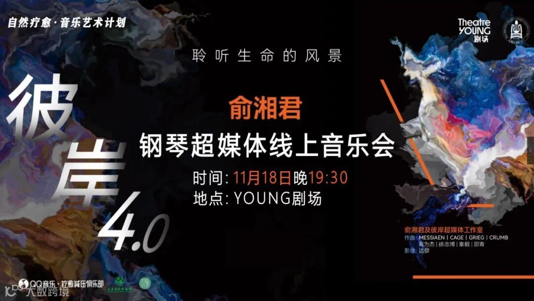 11月18日19:30,俞湘君钢琴超媒体音乐会《彼岸4.0 聆听生命的风景》将进行线上直播。由耳界Earmersion、YOUNG剧场、上海自然博物馆、彼岸超媒体工作室、QQ音乐疗愈减压俱乐部联合呈现,通过上海自然博物馆、耳界Earmersion平台进行在线直播。欢迎大家前去预约观看!