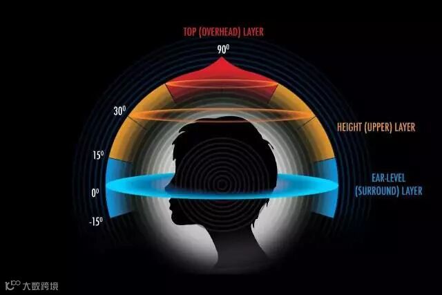 我们除了平面声音,还能够感受环绕在不同高度,角度的声音