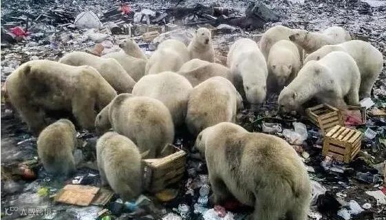 被垃圾包围的北极熊