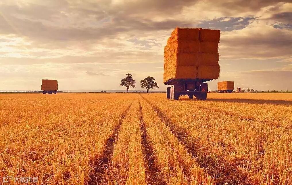“家家户户收秋粮,高高的裸麦倒在地上,成捆的麦子垛成山,夜半牛车搬运忙。”——阿.柯里佐夫