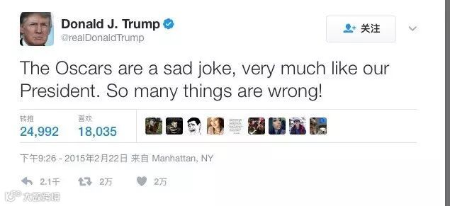 (奥斯卡就是一苦逼的笑话,就跟咱们的总统一样。全都乱套!)