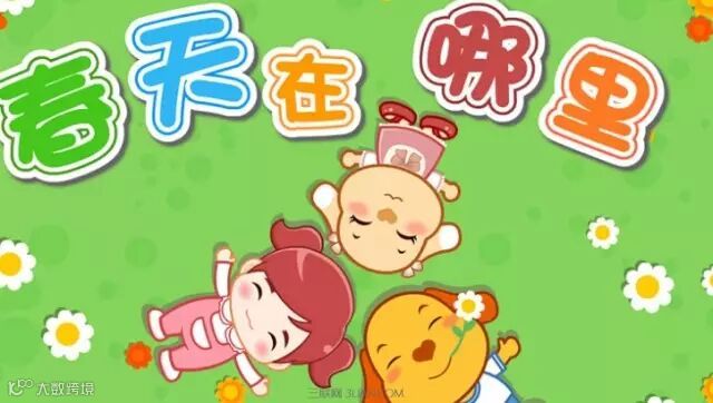 “春天在哪里呀?春天在哪里?春天在那小朋友的眼睛里。这里有红花啊,这里有绿草,还有那会唱歌的小黄鹂。”歌词活泼明快,色彩亮丽,让人脑海里浮现出一片春光明媚、鸟语花香、生机盎然的大自然的画面。