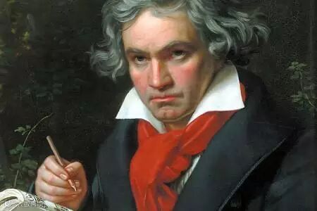 被尊称为“乐圣”和“交响乐之王”的贝多芬,出生于德国波恩的贫穷家庭,父亲是当地宫廷唱诗班的男高音歌手,祖父是波恩宫廷乐团的团长。贝多芬很小就展露出了音乐上的才华,4岁就会弹奏羽管键琴,并获得了音乐神童的美誉;8岁便开始登台演出;11岁发表第一首作品《钢琴变奏曲》;13岁参加宫廷乐队,担任风琴师和古钢琴师。尽管如此,贝多芬小时候没少被父亲打骂,正是在父亲的熏陶和严格训练下,才练就了他顽强的毅力和耐心,使他日后成为世界上最伟大的作曲家之一,在面对失聪和病魔时,他坚定而乐观地说:“我要扼住命运的咽喉,它决不能使我完全屈服……”