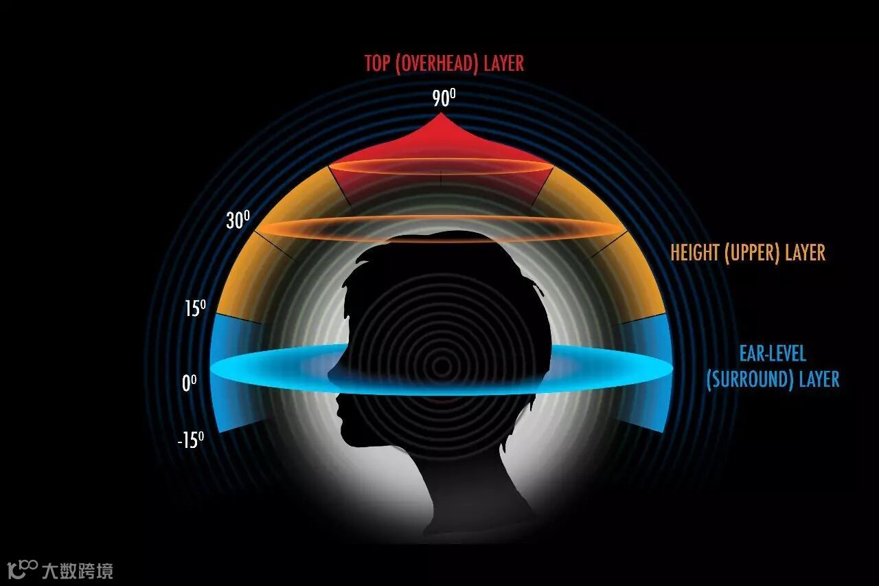 不仅如此,我们除了平面的声音,还能够感受环绕在不同高度,角度的声音。