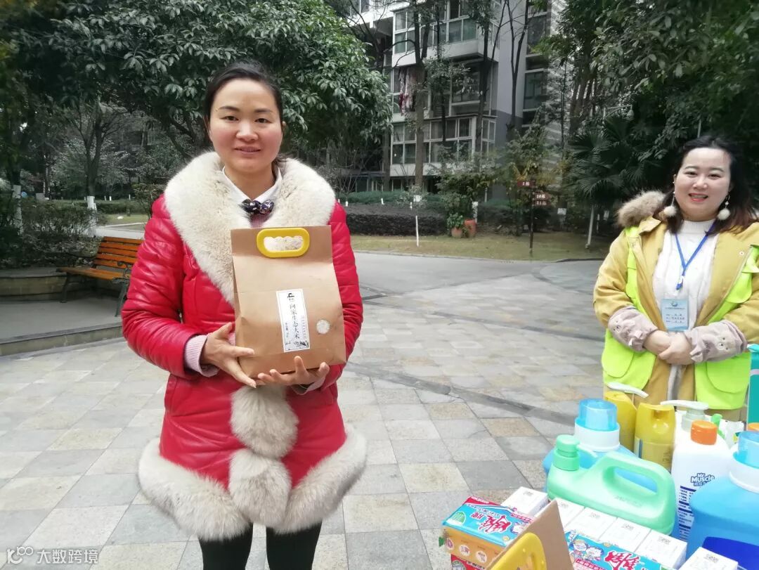 彭州市升华台小区一位小朋友来到我们活动现场,拿出了自己的小背篓,满满当当的换了一背篓回家。