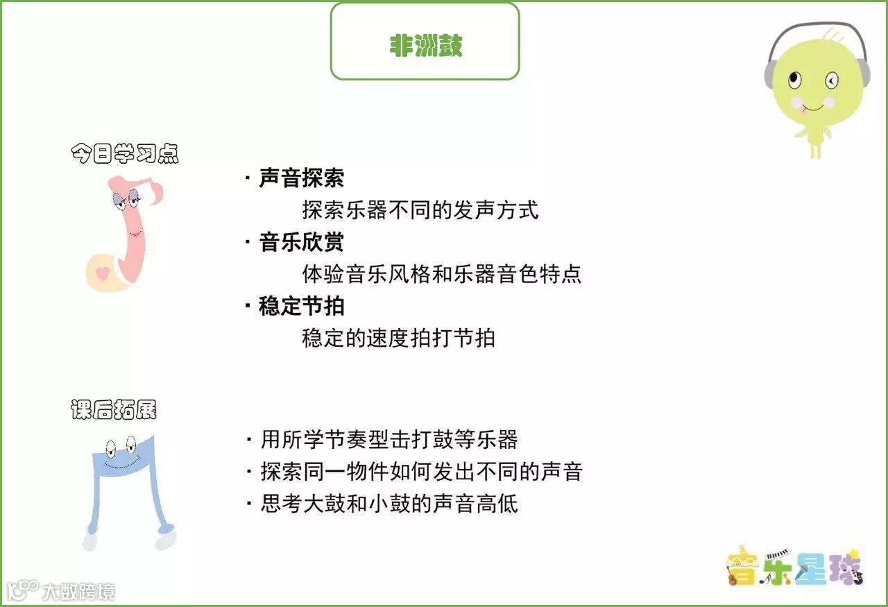 本次的非洲音乐之旅,主要通过非洲鼓等乐器,让小朋友探索不同乐器独特的发声方式,展示非洲音乐中最具特色的强烈的节奏、极强的律动性,并以舞蹈的形式让小朋友们感受到非洲独特的肢体语言表达。