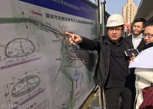 施工人员正在介绍深圳市东部过境高速建设情况