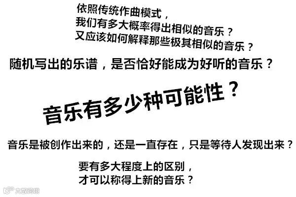 之所以要在开始提到这个概念,是因为我们必须要澄清:无论音乐的可能性是多么大的一个数字,哪怕它已经大到超过我们人类的想象范围,但它决不是无限的。
