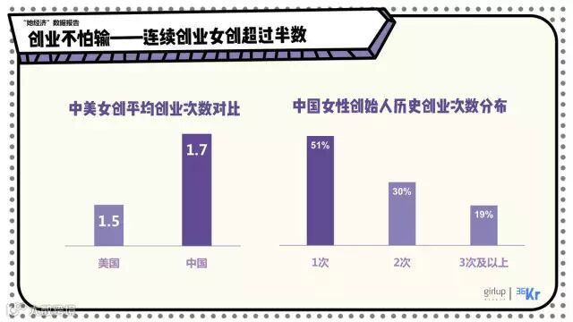 女创基数小,但是死亡率低:女性创业比较谨慎,一般自带资源;另外,女性创业者的抗压力和韧性也不容小觑。