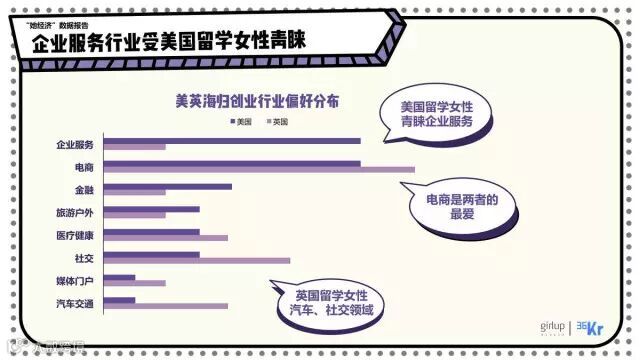 尽管中国创业人口女性占比略高于美国,但总体而言中国女性创业在领域、规模和市场影响力上仍落后于美国。源于一部分女性创业者仅限于线上网店及微商的经营,不属于真正意义的创新创业。