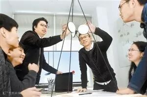 近日,从德国传来喜讯,深圳前海一设计团队设计的“轨迹Oled灯”“地面屏幕”“空气净化器”三个产品获得德国iF国际设计大奖三项产品设计奖。图为设计师展示用Oled材料制作的平面灯,简单的支架上安装了三个平面发光元件,简约而时尚。