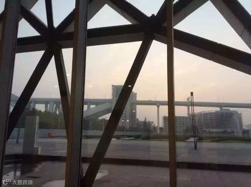 透过美术馆的玻璃,看到蒙蒙亮的天~~
