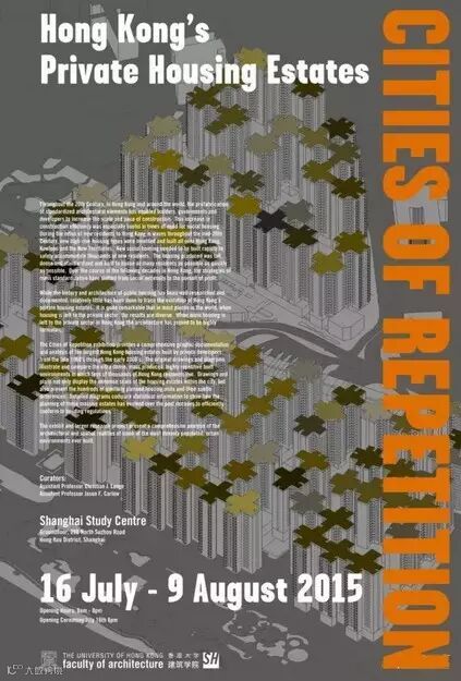 港大上海中心将在7月份举办展览——Cities of Repetition 重复城市——图解香港高密度私人开发住宅区。展览将利用丰富的图片、数据、影像、模型来呈现六十年代末至2000年后香港私人开发的住宅区,及其高度程式化背后的细微差别。