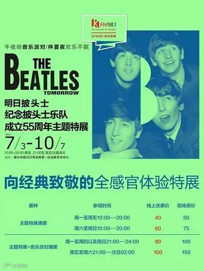 披头士展将突破8小时展览模式,实现全天15个小时的超长展览。全天将分为日常展览,晚场展览与主题派对结合的形式,被称为向经典致敬的全感官主题特展。在为期100天的展期内,特邀知名电台DJ、乐队、音乐人驻唱,重现(改编)披头士经典歌曲,让怀旧和音乐带你回到那个美好时光。