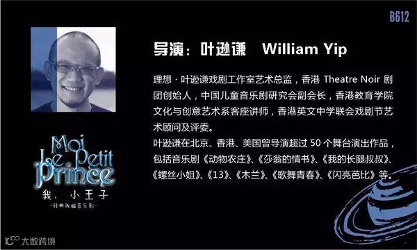 香港著名音乐剧导演叶逊谦将亲自执导《我,小王子》。他担任艺术总监的“理想·叶逊谦戏剧工作室”,正是《我,小王子》出品方“理想文化”旗下的极其重要的团队。