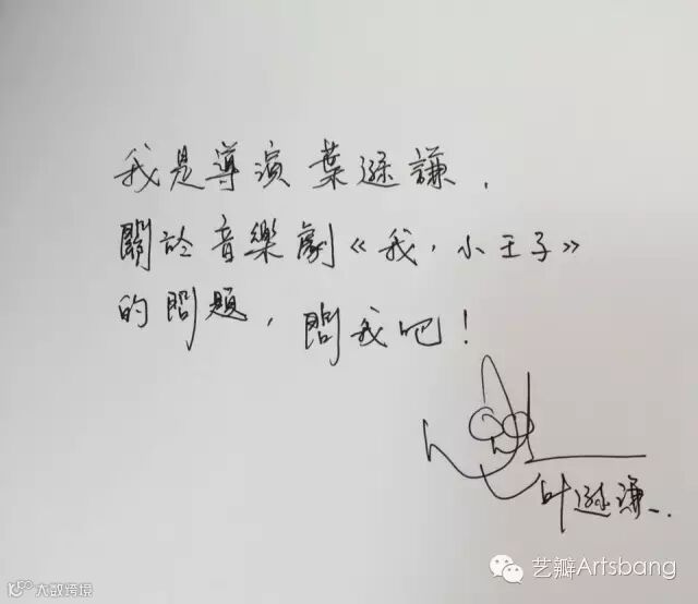 “和大家一样,我也是《小王子》的忠实粉丝;和大家一样,我也从中汲取力量;和大家一样,我也希望它在任何舞台都会非常精彩。”