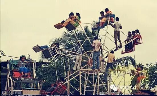 大家还记得阿三国度的摩天轮是肿么运转的吗?木有错!纯靠人力脚蹬!这个巴塞罗那的大转轮和阿三国度的摩天轮有的一拼,不要怀疑它就是一个奇葩的演奏舞台!