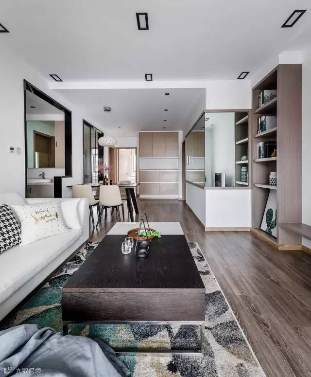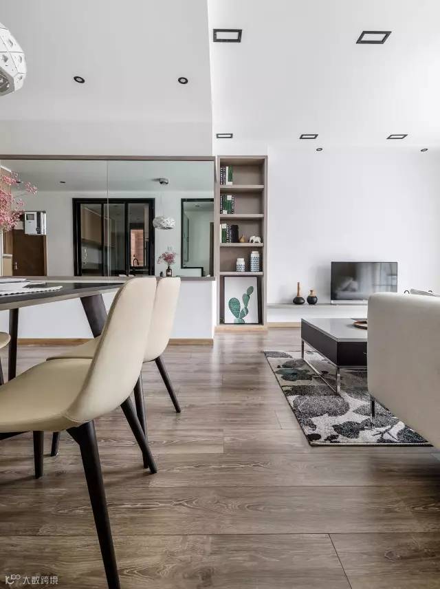 纯白的空间色彩搭配原木地板,赋予空间大自然朴实的气息,