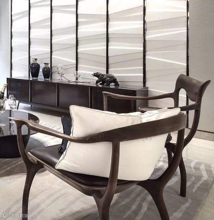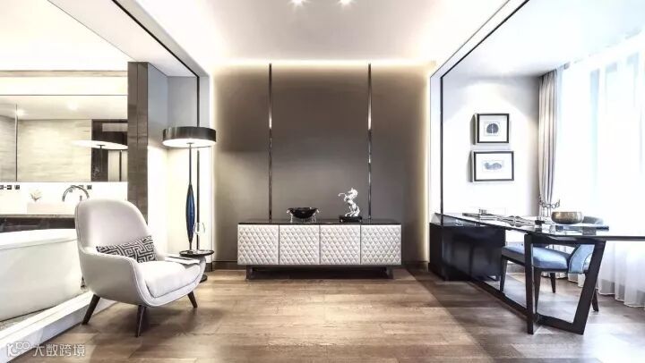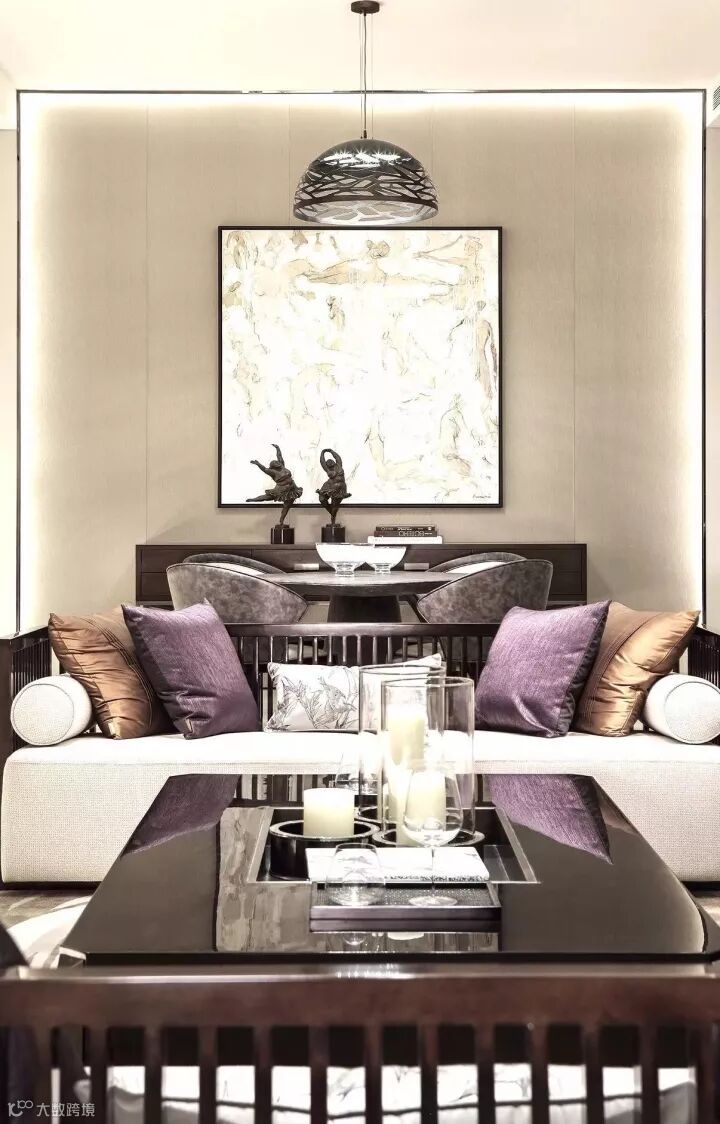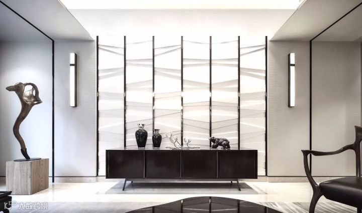 繁忙都市里找到心灵的沉淀,「追求生活,享受生活」满足需求同时传递文化感受,中式是含蓄的美,在意恆久的古韵,对称的佈局营造东方沉稳大方,牆身以错落有序的线条如同凋刻的图层,勾勒的笔触活化视觉,配上傢俱线条简约而独特,以不同素材平衡质感。