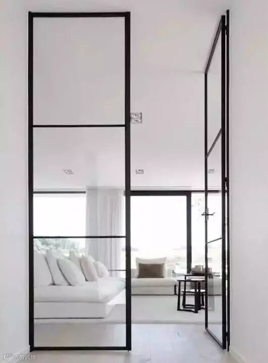 对于私密性要求不高的空间,可以安装玻璃门。譬如你想拥有一个开放式的厨房,但在国内开放式厨房是不能安装天然气的,那么你可以用带窗框的玻璃门来接近这种开放式的效果。