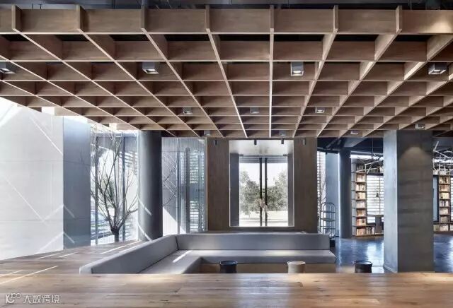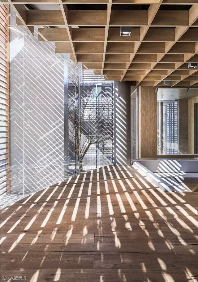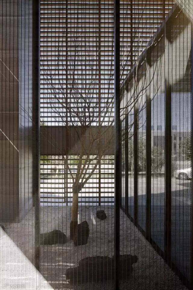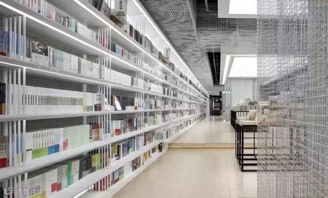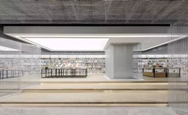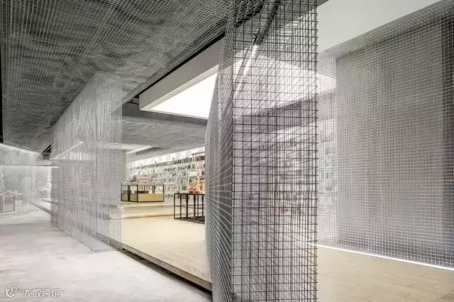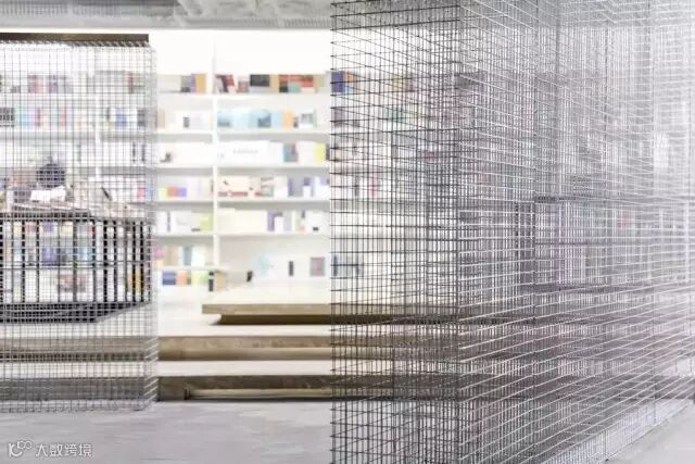 几何的空间架构,贯穿书区的铁网,虚实相生,