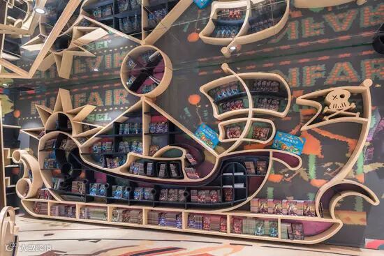 将旋转木马、过山车、热气球和海盗船做成固定的书架,