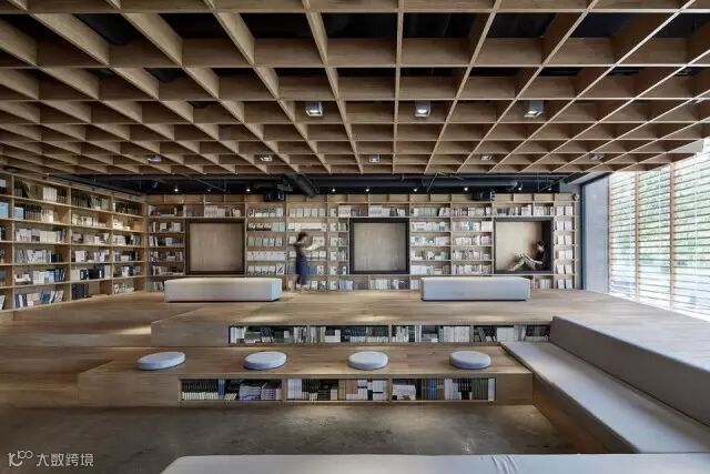 人们可以在阶梯式的书架上下游走,营造一种轻松的环境。