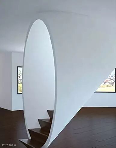 很有安全感的楼梯造型,楼梯的外围就像输送管道,很有趣的设计,上下楼梯的时候会不会有种穿越感啊,为了避免走在里面有种压迫感,将外围设计成白色的正好与客厅的墙面颜色保持一致。