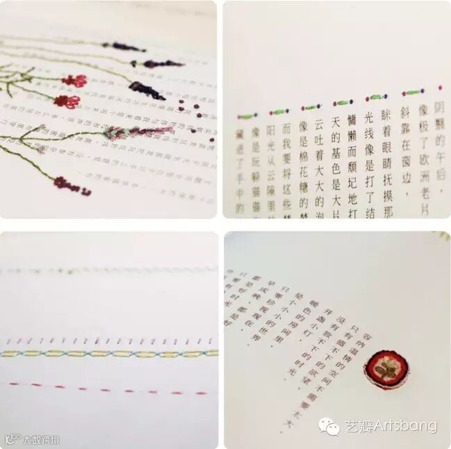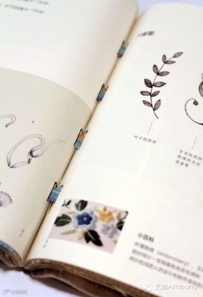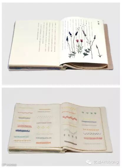 两位设计师搜集了多种针法,通过手绘插画的形式来体现。书中有多处实验性的设计,尤其是一些触感上的尝试,她们尝试把图案绣在纸张上制造阅读时候的小惊喜同时增加了书籍的趣味性。