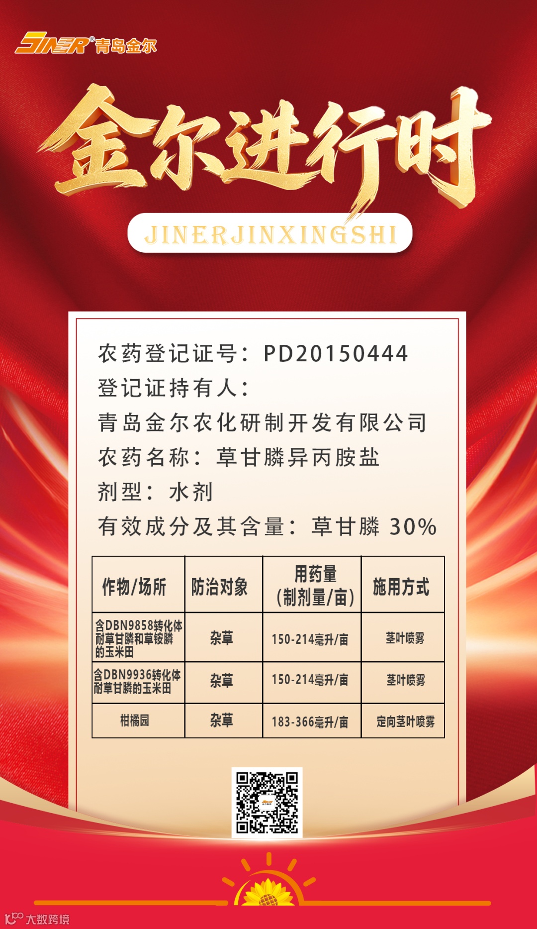 青岛金尔30%草甘膦异丙胺盐扩作登记