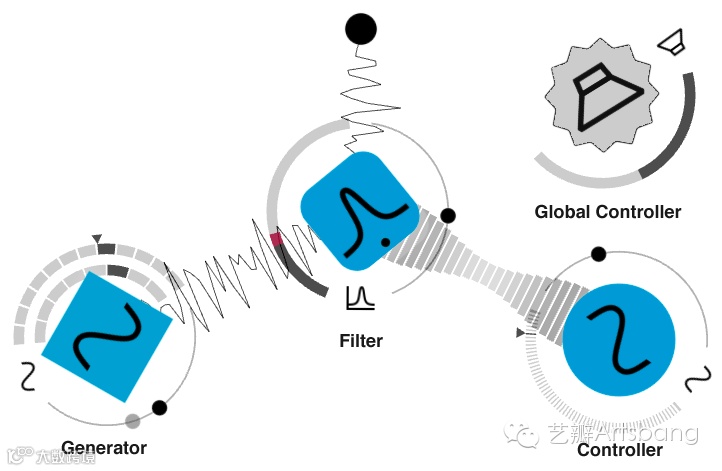 不过,“液内人士”可不会满足于过把瘾的快感,看到这里,一定也有人在思考它的工作原理吧!其实,它就像所有合成器一样,也有振荡器、效果器、滤波器和控制器,除此以外,还有总体控制器,用于控制整体音量、速度等。