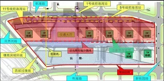 据悉,前海综合交通枢纽工程位于前海桂湾片区开发一单元,占地约20万平米,建筑面积约215.9万平方米,是穗、莞、深城际线、城市轨道交通1、5、11号线交汇的枢纽,东通深圳福田和罗湖中心区,北接深圳机场,集城际轨道、城市轨道、常规公交、出租、社会车辆等多种交通接驳方式于一体,并预留出入境口岸及机场值机服务设施、上盖物业开发的综合性客运交通枢纽。