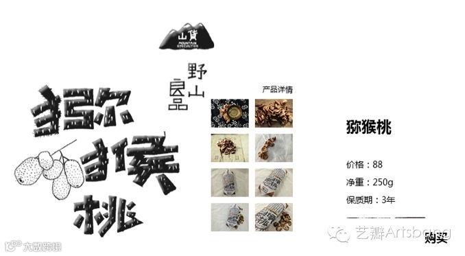 在殿前呆的越久越觉得殿前村民像极了那些长满小刺却有丰富营养的山间野果。并不擅于表达自己,内心却十分的淳朴善良。所以包装上的图形有着毛毛刺刺的轮廓,里面是简单淳朴的村民自己对这些山果的介绍。字体是手写的充满拙感的字体。有一些坑坑洼洼,牺牲了一些识别性,不完美,却有了更多的人情味,有时候太完美精致的东西反而让人觉得不真实。