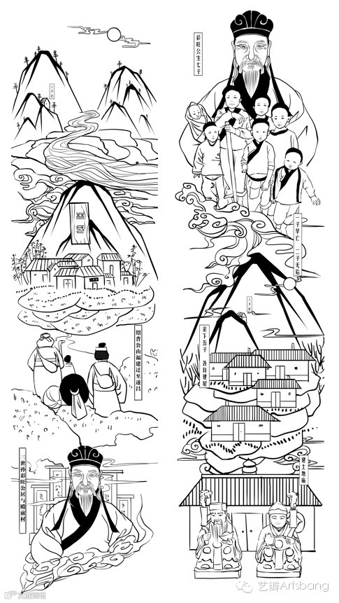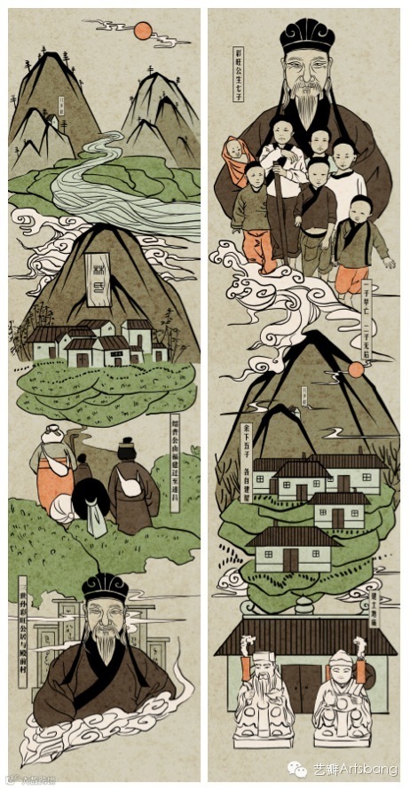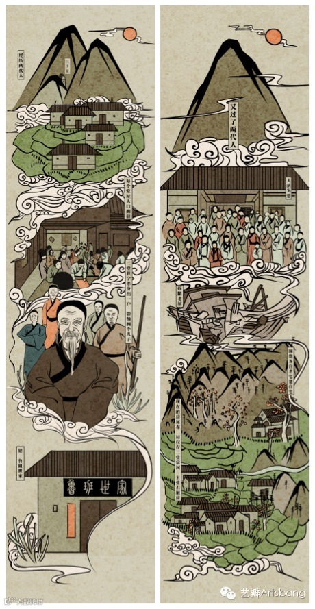 文脉组成员孔维佳(中国美术学院插画社社长,中国美术学院上海设计学院12届视觉传达学生),巧妙的将历史变迁的故事用插画形式展现出来,使其变的更生动有趣。