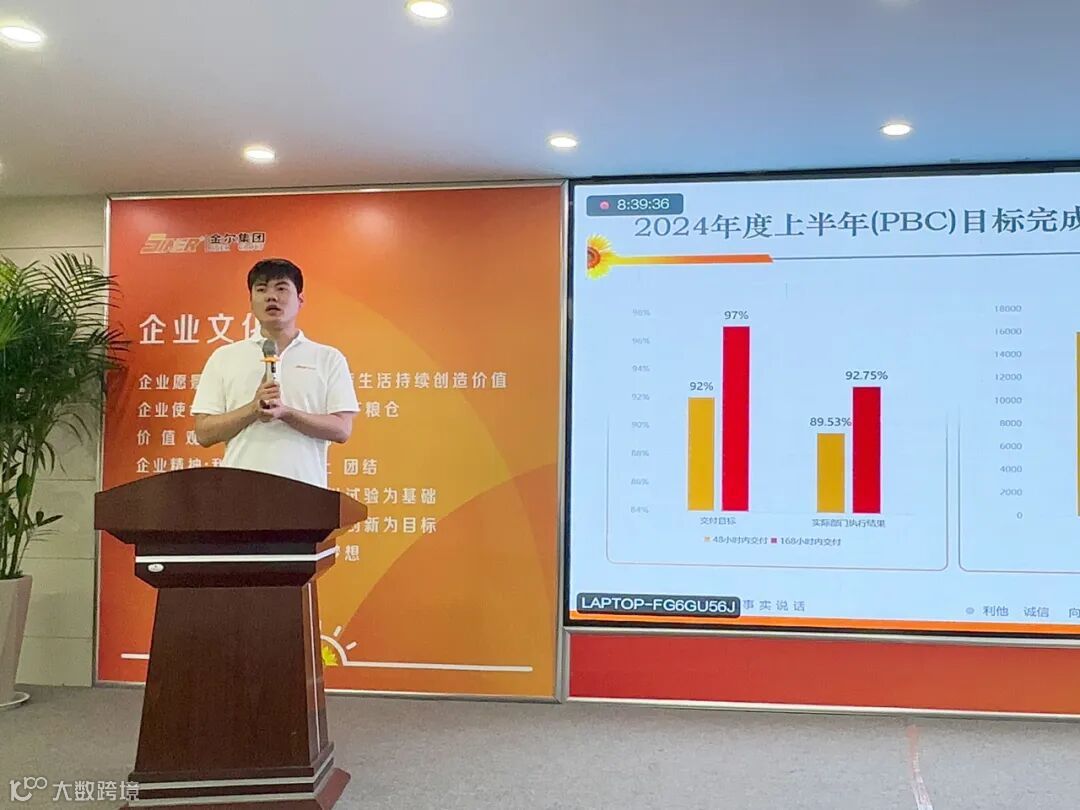 集团总裁王蕾女士回顾了2024年上半年目标达成情况,并规划了下半年的主要目标和工作,表扬了先进,鼓励了全员气势。