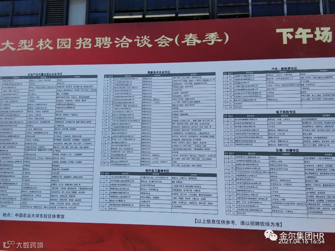 当天下午,公司人力资源部还参加了中国农业大学2021届毕业生大型校园招聘洽谈会,现场向中国农大毕业生们介绍企业的发展历程、企业文化、用人理念等。我们诚挚邀请广大莘莘学子加入金尔大家庭,为自己的梦想起航,创造人生更加辉煌的美好未来。